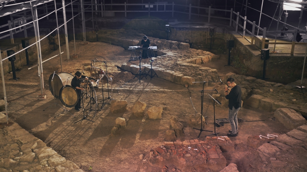 而《在聖堂裡的一場演出》,歷時四年製作,源於2018年至2020年間考古團隊在基隆和平島發掘出的諸聖教堂遺址。其視角從和平島的考古現場,延伸至17世紀柬埔寨與荷蘭的戰爭、麻六甲的城牆等遙遠的時空,企圖透過當代藝術的行動、聲音創作與考古學三者的交會,帶領觀者想像一個超越既有經驗的、宏大的大航海時代歷史。