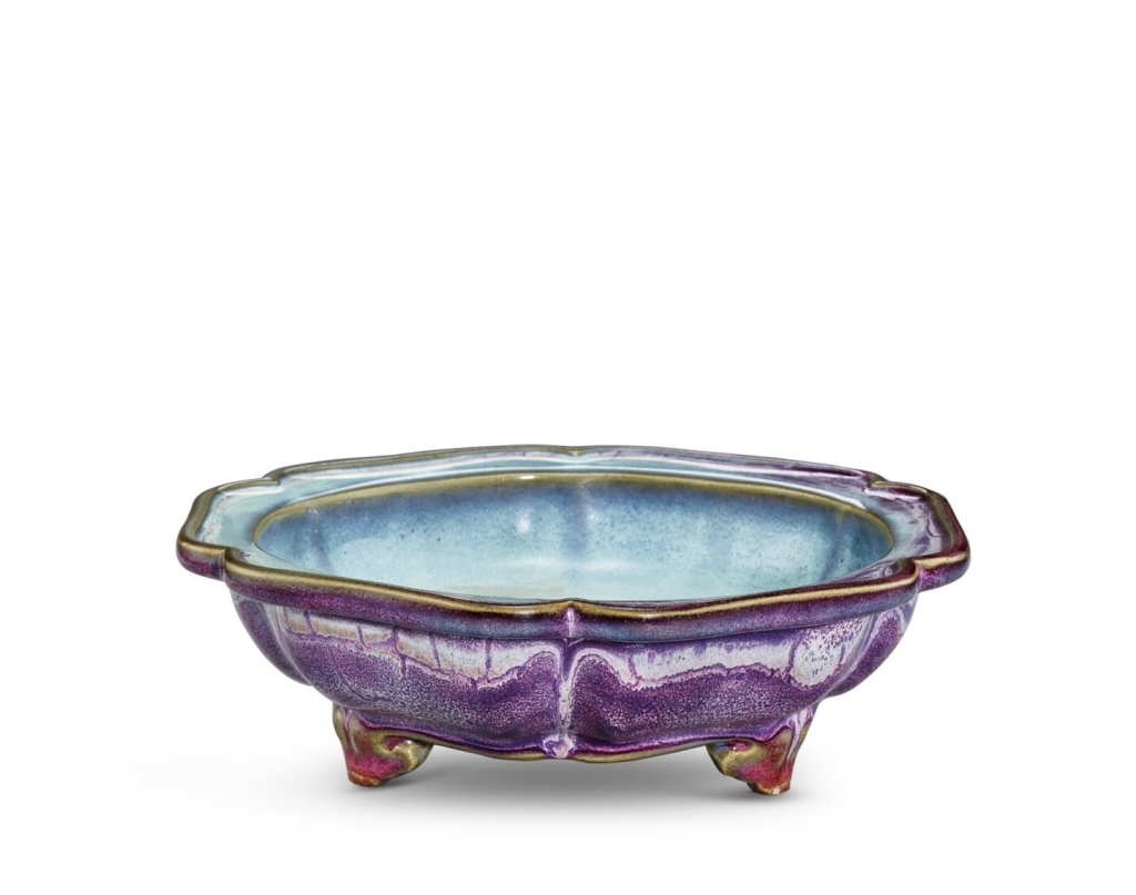 於千萬價位之外,多件拍品價位表現可圈可點。明初《鈞窰玫瑰紫釉三足葵式水仙盆奩》底刻「六」字、「建福宮」、「竹石假山用」款,估價600萬至800萬港元。此水仙盆作六瓣葵花式,折沿,沿邊起棱,線條起伏有致,造型端莊秀雅。通體內外施釉,盆內覆天藍釉,外壁玫瑰紫釉,凸棱處釉薄泛醬黃色,釉色相映成輝,宛如盛放葵花。器底刻「六」字以示尺寸,並帶清宮造辦處玉作匠人所刻「建福宮」、「竹石假山用」款,表明其為清宮陳設之珍器,最終成交價901萬7000港元。北宋《青白釉瓜稜式帶蓋執壺》估價100萬至200萬港元,逾低估價4倍多之成交價482萬6000港元。南宋至元《灰被天目茶盌》配《烏漆盞托》估價50萬至100萬港元,逾低估價7倍多之成交價381萬港元。清嘉慶《爐鈞釉蓋壺》「史繼長製」款,估價8萬至16萬港元,逾低估價9倍多之成交價76萬2000港元。