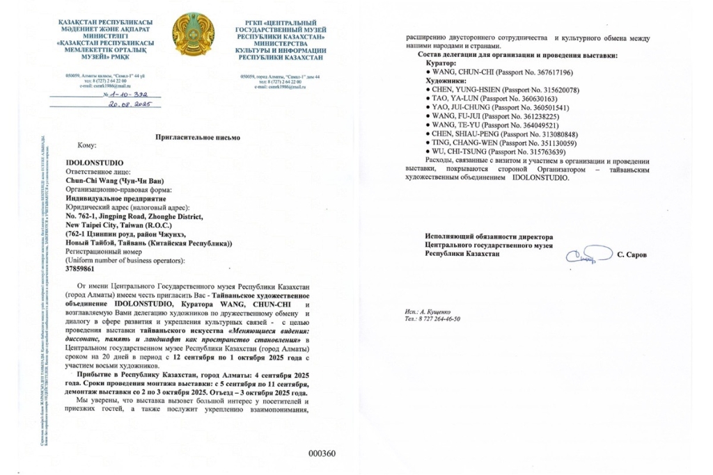 獲得文化部首次「文化黑潮之中壯世代藝術家國際展覽」計畫補助,策展人王俊琪所策畫的「可變的不和諧:社區敘事、記憶以及過去和未來的景觀」(Shifting Grounds: Dissonance, Memory, and Landscape as a Site of Becoming)展覽,原定於9月12日至10月1日在哈薩克共和國中央國家博物館(Central State Museum of Kazakhstan)展出。然而,開幕前夕,該展覽卻因中國駐哈人員的抗議,遭館方片面以「場館維修」為藉口,強行解除合約,這起事件不僅打亂了策展團隊的計畫,也凸顯了臺灣在國際文化交流上所面臨的結構性困境。