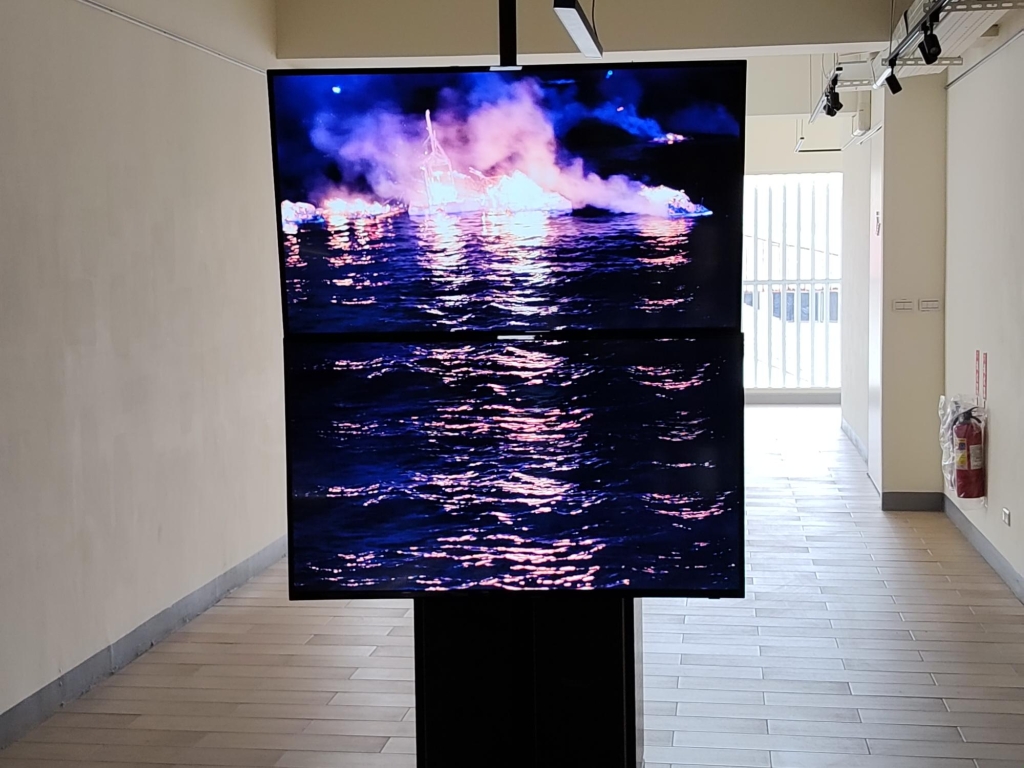 日治時期曾有為數可觀的韓國人僑居基隆,二戰後只有少數生根留下,本次任興淳的錄像作品《The Waves》(파도),一方面聚焦此一現象,另一方面呼應英國作家吳爾芙(Virginia Woolf)的經典同名小說《The Waves》,是一個透過不同人的獨白, 連接歷史敘事的動態影像作品。藝術家自2004年起,持續關注「越戰」遺留下來的影響,以及尚未充分言說的「麗水順天抗爭」與「世越號事件」。藝術家從這三起事件中,找出了「國家機器」與「海洋」這兩個共通點,並聚焦於事件核心的「中介者」們,記錄下他們的故事。《The Waves》既是象徵突如其來襲向生命的事件與其帶來的悲傷,也同時代表著讀懂風與浪的流向、由此開拓出的航道。透過本作探索中介者的敘述網絡, 任興淳嘗試呈顯另一種歷史敍述一種來自生命、情感與見證的歷史。