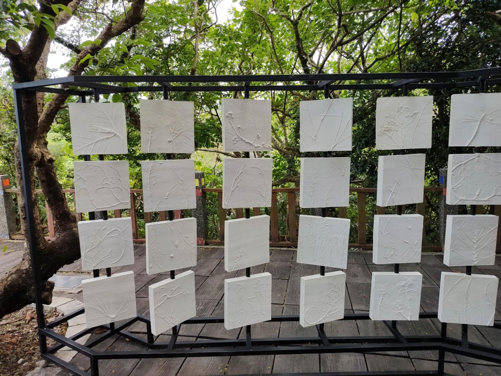 平常居住在萬里的排灣族藝術家張恩滿,在開幕時特別強調,此作拓印的不是族人認定最美麗的植物,而是能夠代表遷徙歷史、生活軌跡,具有紀念價值的作物與植栽。她時常與北部不同的原住民族社群往來,聯絡感情的同時,也認識彼此的故事與日常。《植物誌轉印術》是紀念著這些日常交往中隱含著的族群文化與記憶的裝置計劃。該計劃自 2024年啟動,回應離散原住民族的文化記憶與文化延續性等議題,此次作品《植物誌轉印術——奇浩的文化記事簿》所聚焦的「奇浩部落」,是在1960年代自花蓮北漂來到基隆八尺門一代屯墾、生活的都市原住民阿美族人們所凝聚的社區。 藝術家以訪查與社區共創的創作過程中,將族人們日常中經常採集的植物來做拓印,在複刻植物美感自然生成的造型裡,並將這些拓印的結果,組裝放置在每年七月會舉行豐年祭的觀海平台,象徵著聯繫族人與海另一邊的祖靈們之間的文化記憶。