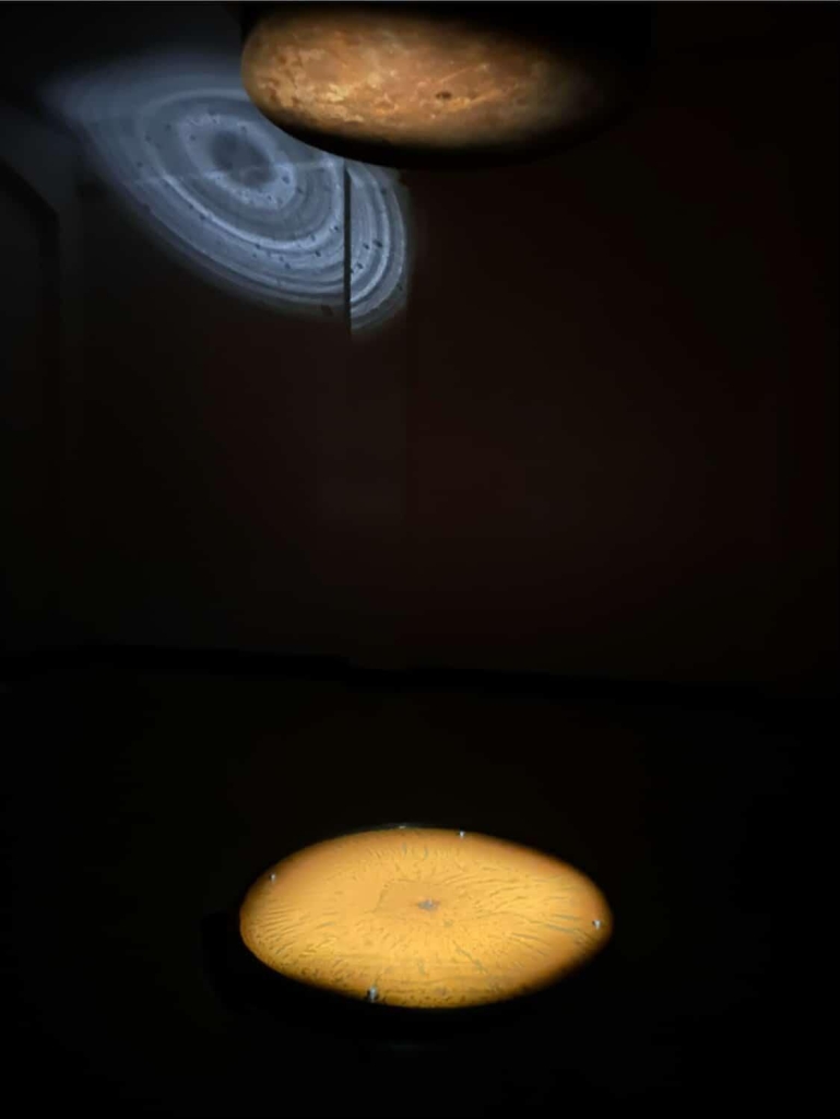 「潮濕」是許多北部人都有共鳴的生活經驗,而來自基隆的藝術家張子恩,作品以基隆的潮濕氣候巧妙點題「潮」藝術,透過創作重新演譯潮濕在不同感官之間的感知方式。他以回收改裝的除濕機為核心,透過冷凝、加熱、蒸發等過程。將「雨城」基隆的潮濕循環進一步展演化。原本用以排除水氣的家電,被轉化為一組重新凝視、轉譯水循環的機件,水氣凝結成滴,落下、蒸發、再度歸於無形。展場中,水溫的循環與基隆街巷。 魚市、港灣的錄音交織,營造出濕氣的身體感、知覺經驗和聲音記憶。閉門時展場全暗,可以看見水光在天花板上反映出的一輪星河,門一開,又可以看見如木紋如玳瑁一般的金屬鏽蝕痕跡,原來無以捉摸的「濕」,成為了有光、有聲、有質地與花色的藝術展演。