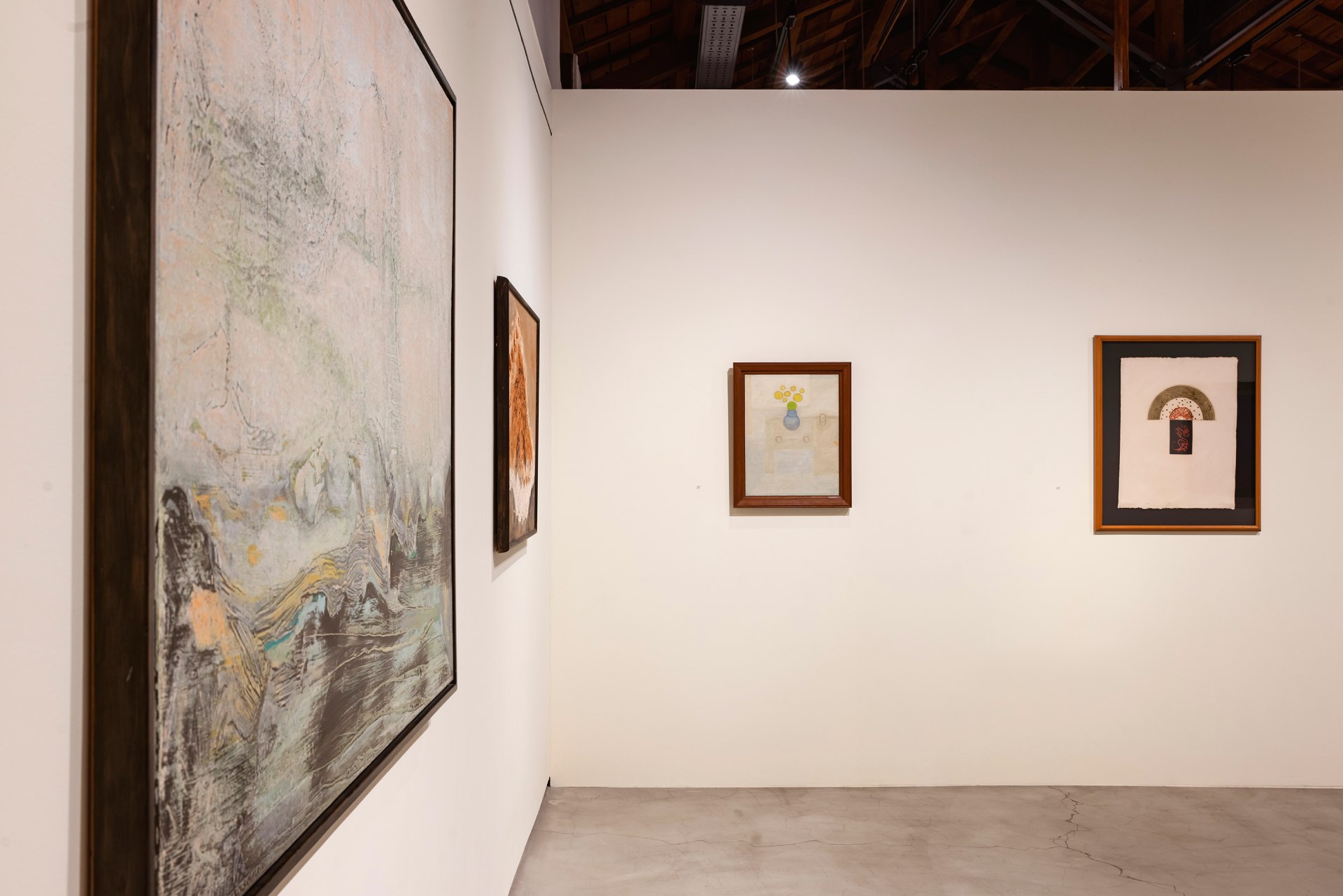 而這些透過閱讀獲致的關於生命的深沉思考,使他擁有能洞悉抽象的眼光與心靈,特別是臺灣1950-60年代最前衛的東方畫會成員的作品:曾經他將蕭勤的畫作懸掛在家中,不惜佔據一整面紅磚牆。陳道明3幅肌理豐富、色彩靈動的畫作,則是掛在誠品辦公室。李元佳近乎單色的畫面上只有幾個「點」,竟也是他欣賞的對象。這些藝術家以西方媒材表現東方哲思,透過抽象畫或非再現式的繪畫傳達無法被具體表現的精神世界。而王攀元那一片黑暗中若隱若現的搖曳《殘燭》,流露出一種大時代下的悲愴,更是觸動他的心弦。