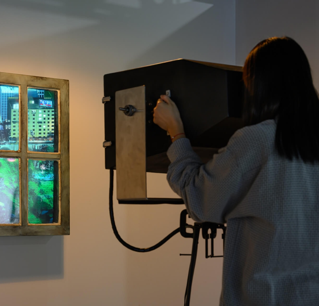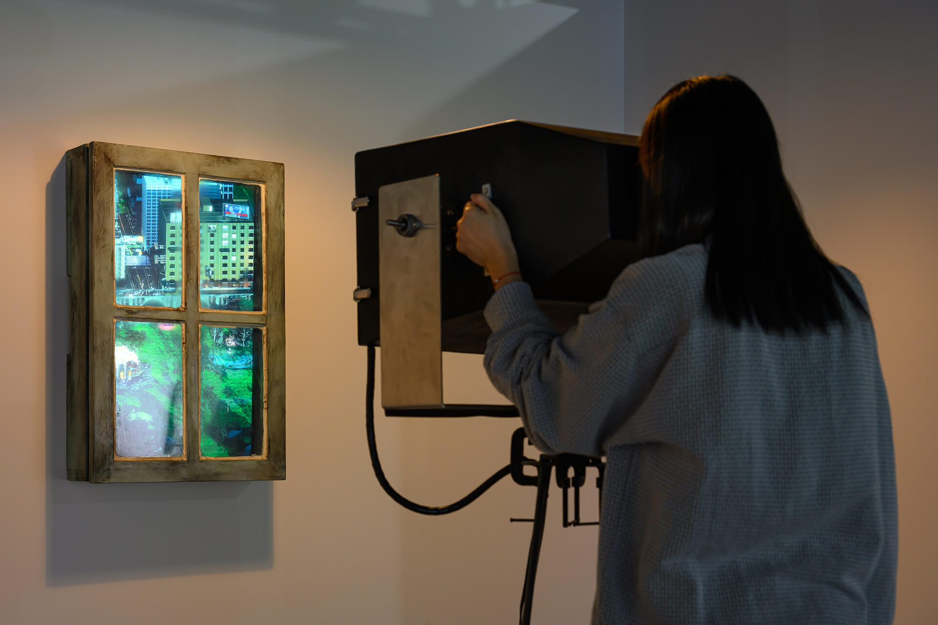 值得一提的是,今年首度開放「團體名義」投件,顯示創作模式日趨多元協作。「科技新媒體類」首獎與次獎皆由團體組合獲獎,其中陳采宜、羅芷葳〈你看那邊有聲音?〉以「望遠鏡」的觀看經驗置換觀者於虛擬世界中的視線游移與切換,探索「觀看聲音」的可能,挑戰視覺與感知的界線。該類別作品結合多媒體裝置與AI運算力,開展當代創作在技術與感官層面的多重方向。