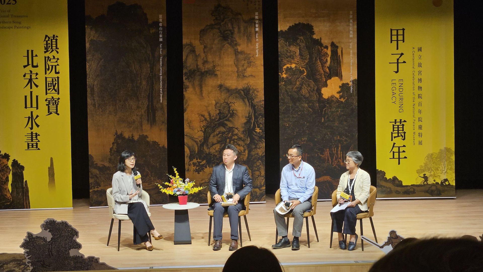 開展典禮中,由總策展人余佩瑾副院長主持精采對談,書文處策展人許文美副研究員及陳建志助理研究員、南院處策展人朱龍興副研究員分享三幅山水名作的觀看視角,使現場彌漫著北宋山水畫境的迷人魅力。此外,展覽現場特別匯集歷年研究宋代繪畫的重要專家評述,以「前人指路」為題,將學者觀點融入展場脈絡,讓觀眾在觀畫之餘,也能從歷代論述中理解北宋三大家在中國繪畫史上的崇高地位。