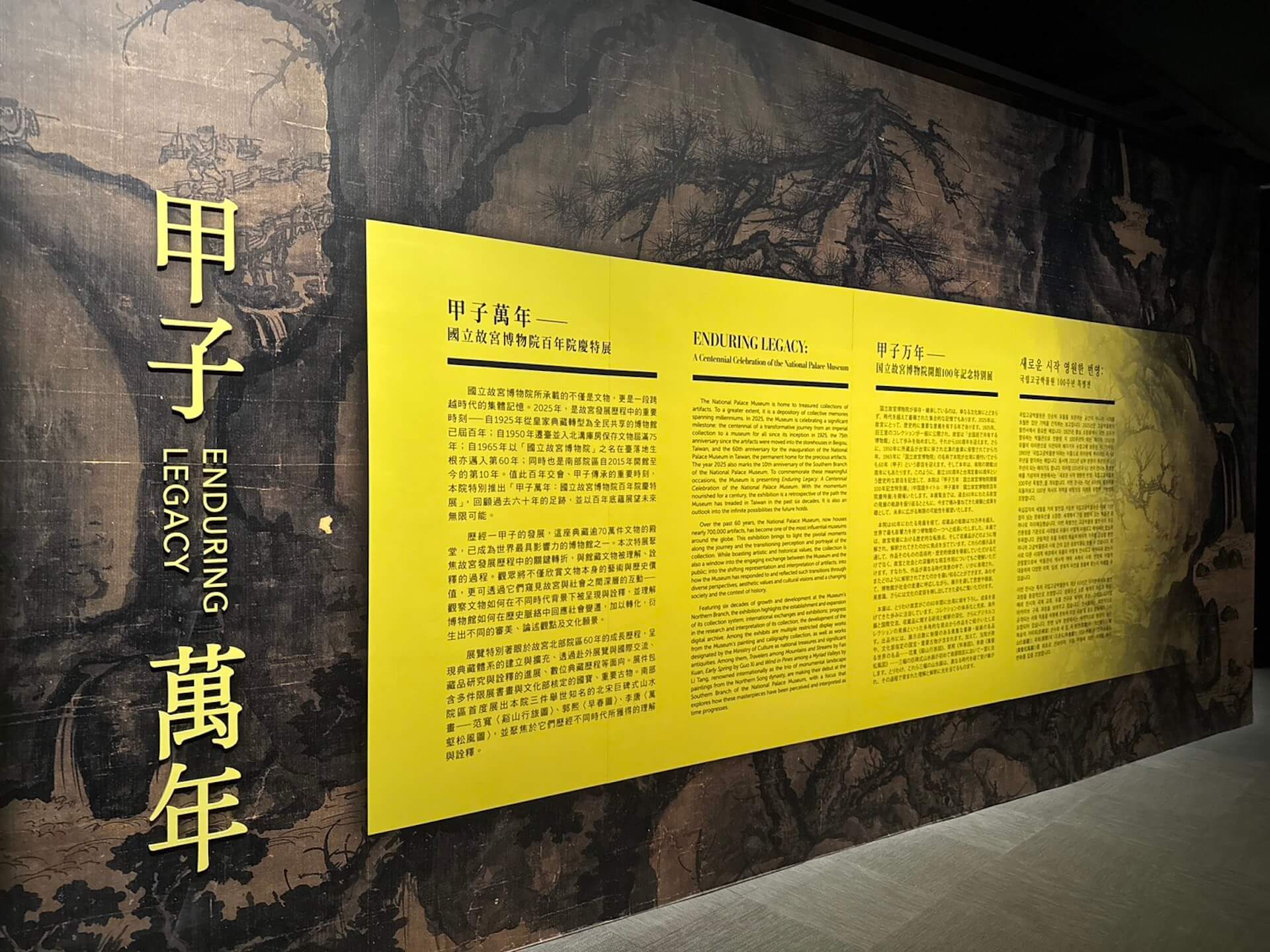 故宮博物院自 1925 年成立,至今已過百年。歷經文物播遷來到臺灣落地生根,並於 1965 年在臺北外雙溪館舍落成一甲子,故宮南院也正巧落成十週年。故宮以「甲子萬年」為名回望歷史、展望未來,聚焦故宮典藏如何從清宮舊藏,透過收購、捐贈不斷擴充,展現知識傳承與文化使命 。