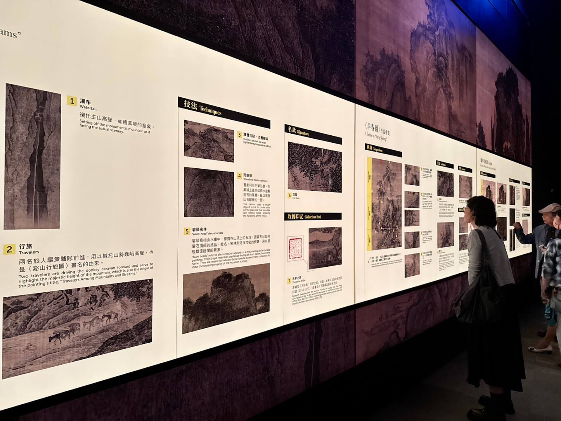 范寬筆下的山勢雄厚、意境悠遠;郭熙描繪早春山林的生機與靈動;李唐則以斧劈皴開啟南宋新風格,三者構成山水畫境的巔峰。余佩瑾副院長表示,這三幅北宋山水名作在藝術史上占有極其重要的地位。歷次展出不僅激發了學界的深入研究與討論,本次更特別調整展示設計,玻璃展櫃寬度由以往在北部院區的120公分縮減為65公分,讓觀眾能更近距離地欣賞畫作細節,進一步深化對三幅巨作的藝術理解與審美體驗。