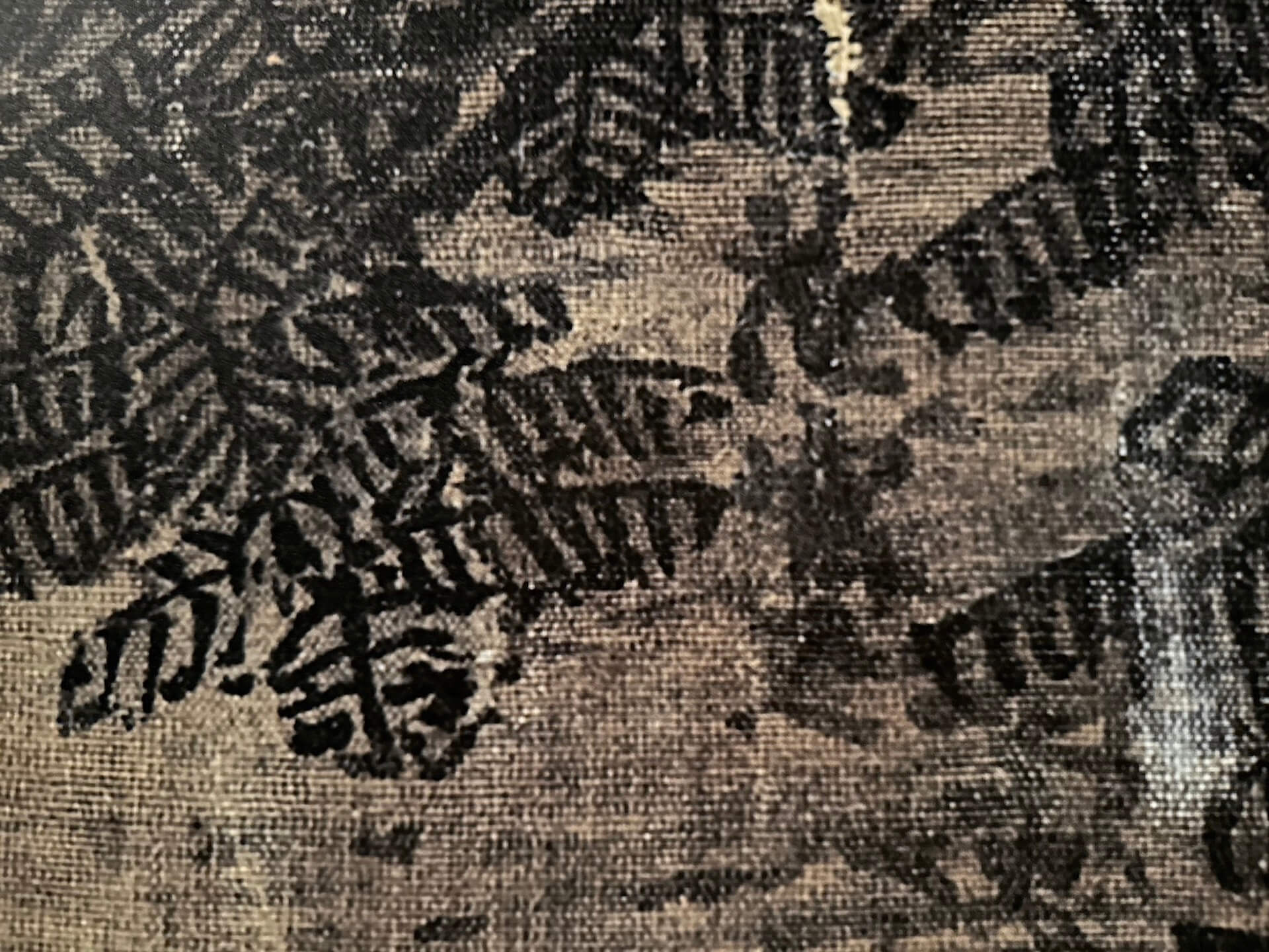 這二字簽名極為重要,因為它是本幅得名之由來,只是它藏得太隱秘了,幾百年來竟未被人發現,想到這幅名畫不知經過多少人欣賞摩挲,一直到今天才為我們尋到發名,不能不說是一件「奇蹟」。