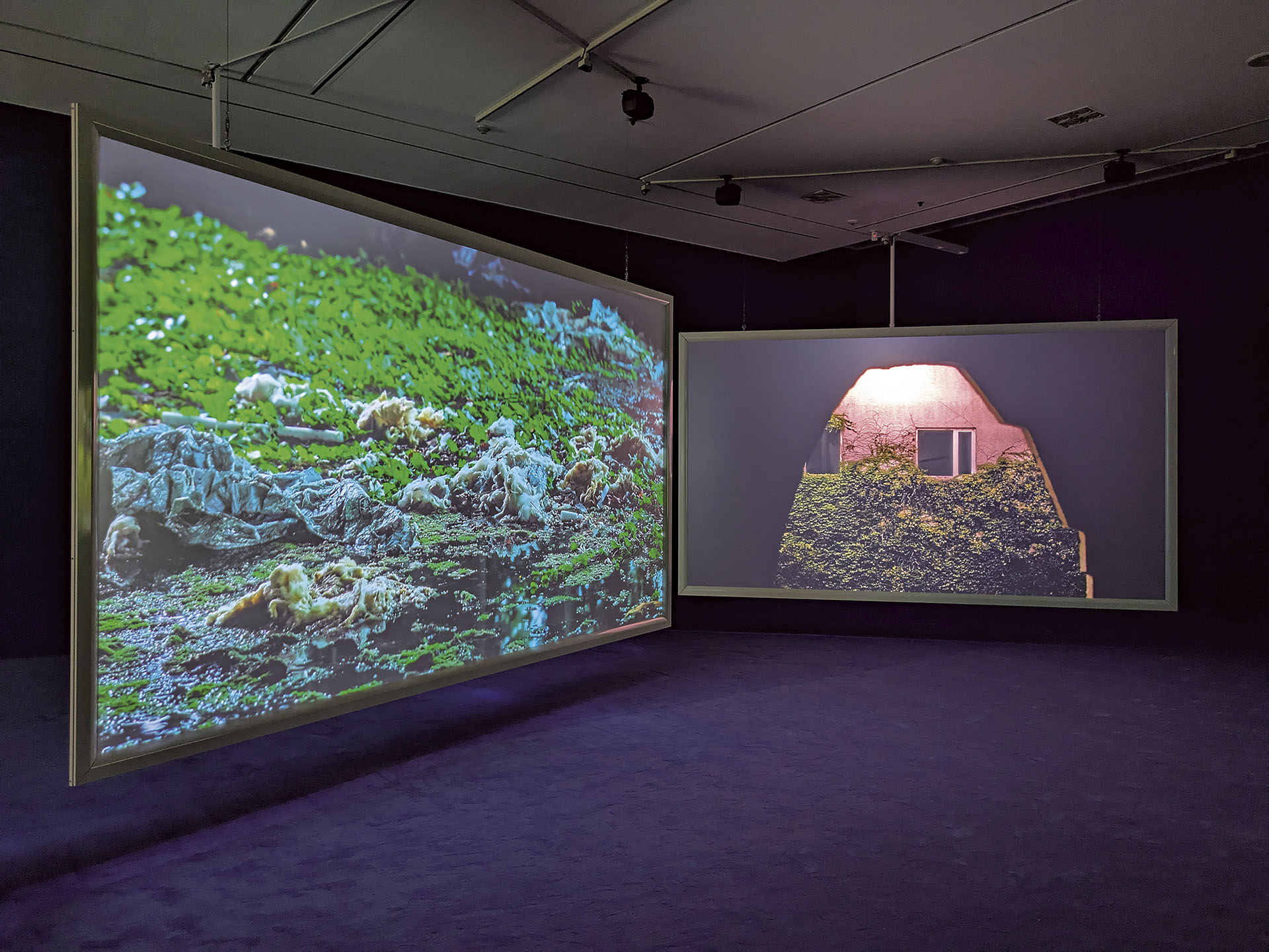 美國藝術家史凱.霍平卡(Sky Hopinka)的雙頻道錄像作品《地下之月》(Subterranean Moon)拍攝北美原住民族的傳統舞蹈,以影像作為記憶與文化存續的載體,並傳達原住民族的宇宙觀。丹麥籍韓裔藝術家簡.金.凱森(Jane Jin Kaisen)的雙頻道錄像作品《Sorrow Waters This Land》則拍攝韓國濟洲島上一座廢棄的旅館,風雨過後從屋簷傾倒而落的水瀑,和穿梭廢墟內外的鬼怪(Dokkaebi)將駐留於此的無形幽魂以傳說生物的形式再現。