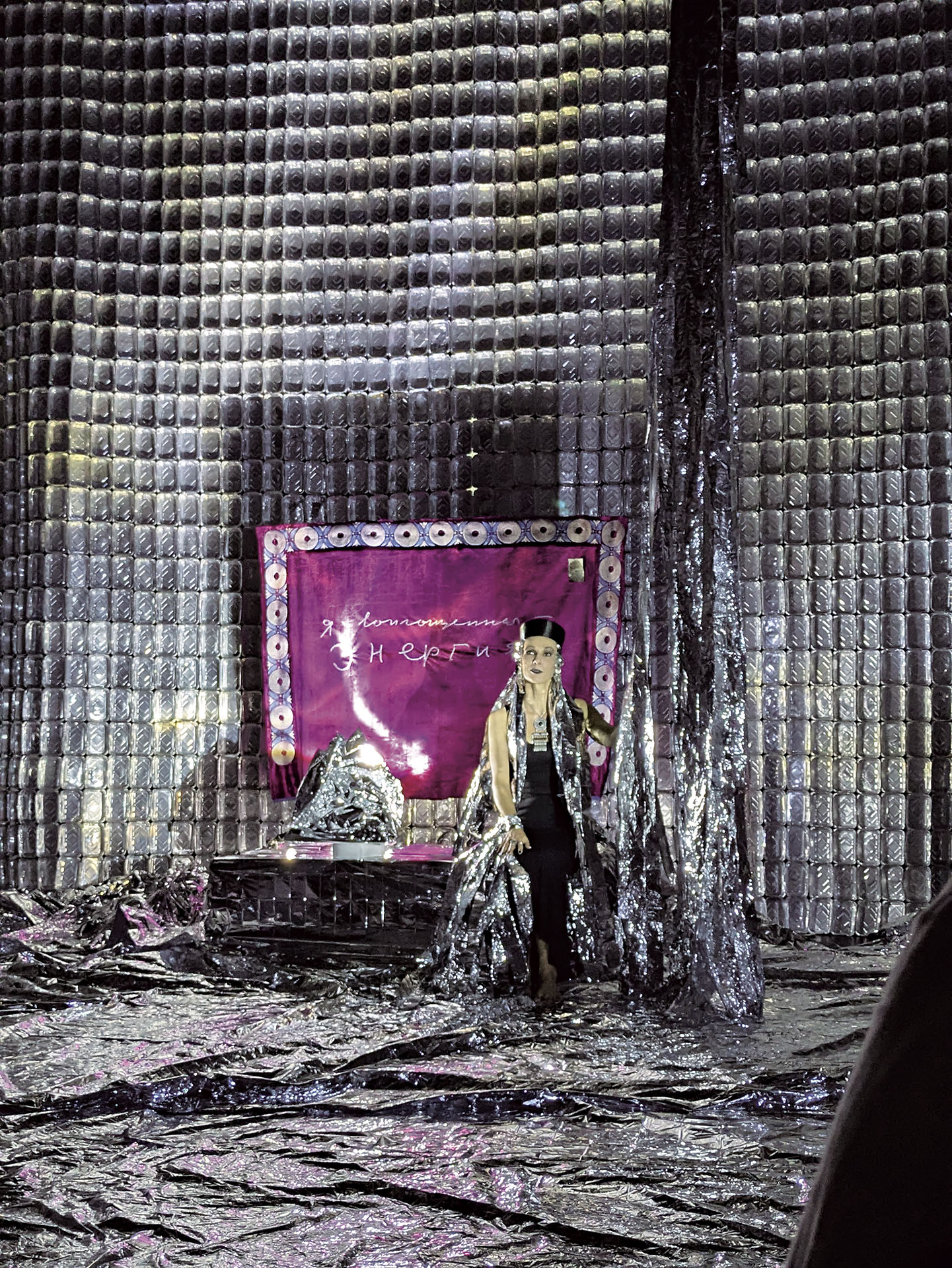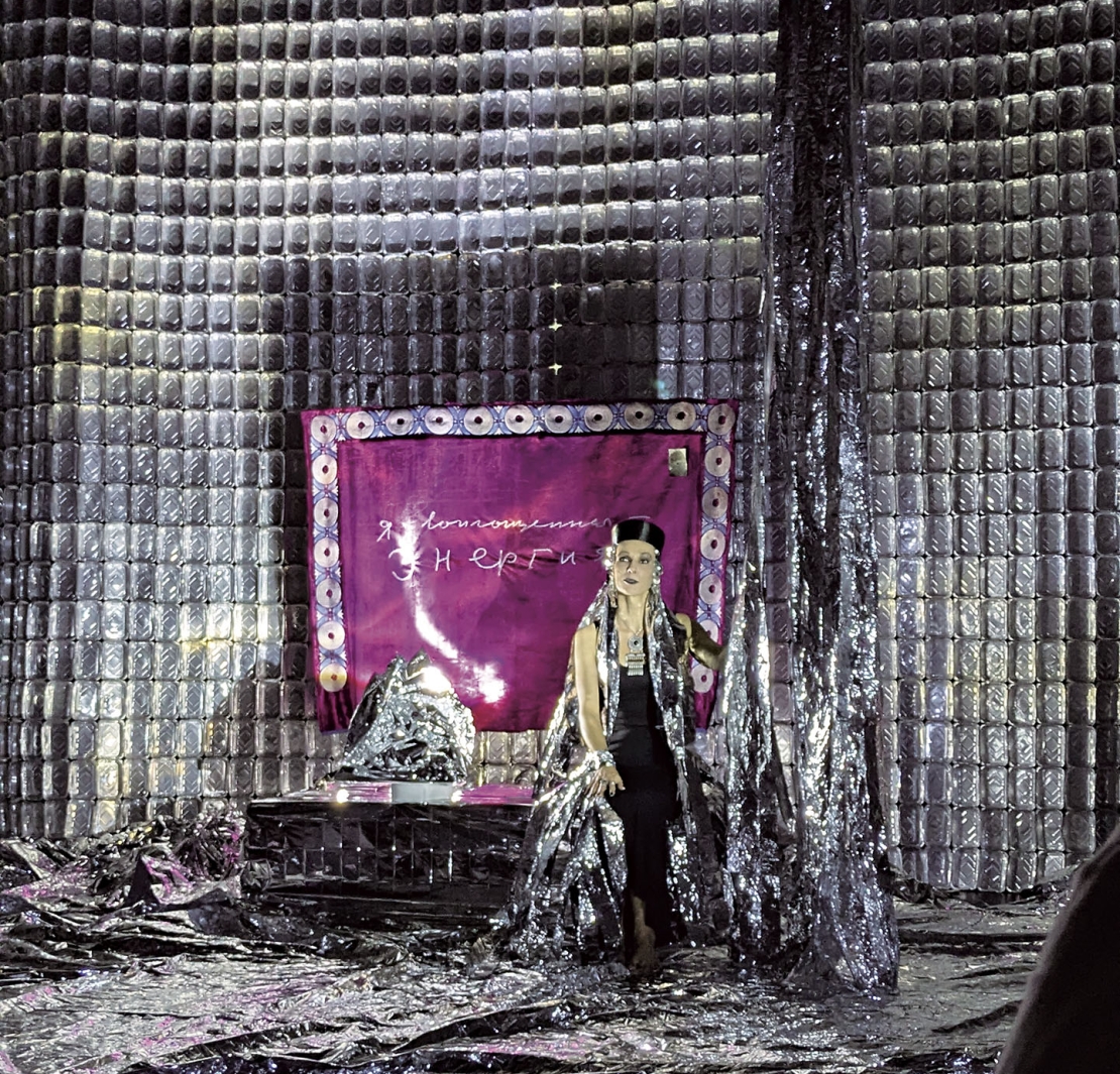 在演出中,導演宣稱每一位觀眾皆是「天才」,透過歌唱、吟詩與以電池製造光亮等行為,集體念力能夠反射核能,並扭轉哈薩克現況,被銀色鋁鉑盒、鋁箔紙包裹的小劇場直接變成一次神秘體驗的會場,陌生觀眾因為某種利他主義多半認真參與演出,銀光閃爍的效果也暫時消解了媒材的廉價感,在短短60分鐘裡,眾人沉浸於一種對奇蹟的嚮往之中。
