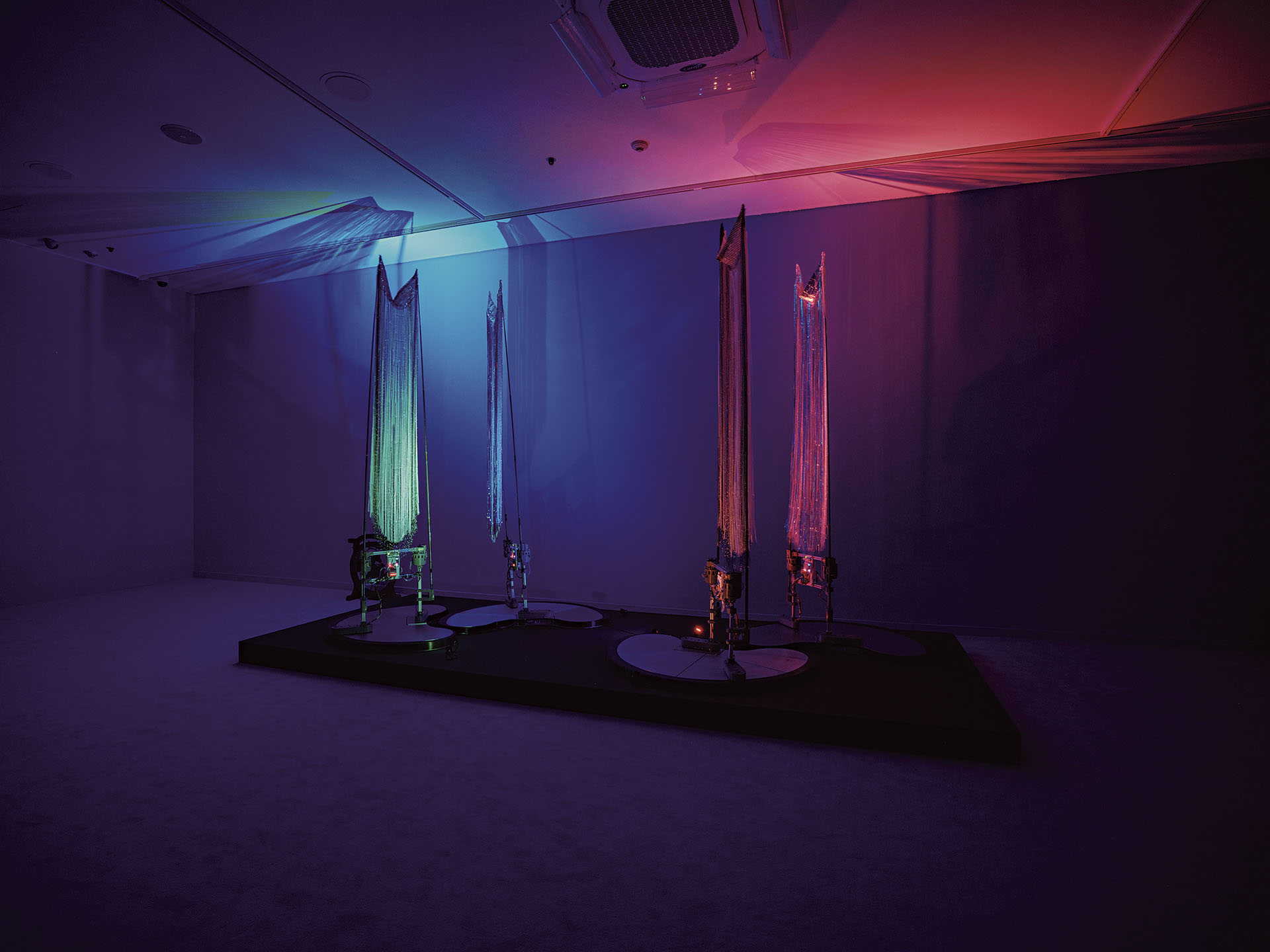 相較於許家維向地方神靈的探問,藝術家權秉俊(Kwon Byung-jun)的作品《Opening Blooming from the center; Golden Flower of Potential》靈感則來自道家有關內丹術的著作「太乙金華宗旨」,四具模仿薩滿儀式進行自動舞蹈與演奏的聲光裝置,回應了道教中關於元神和識神的辯證。