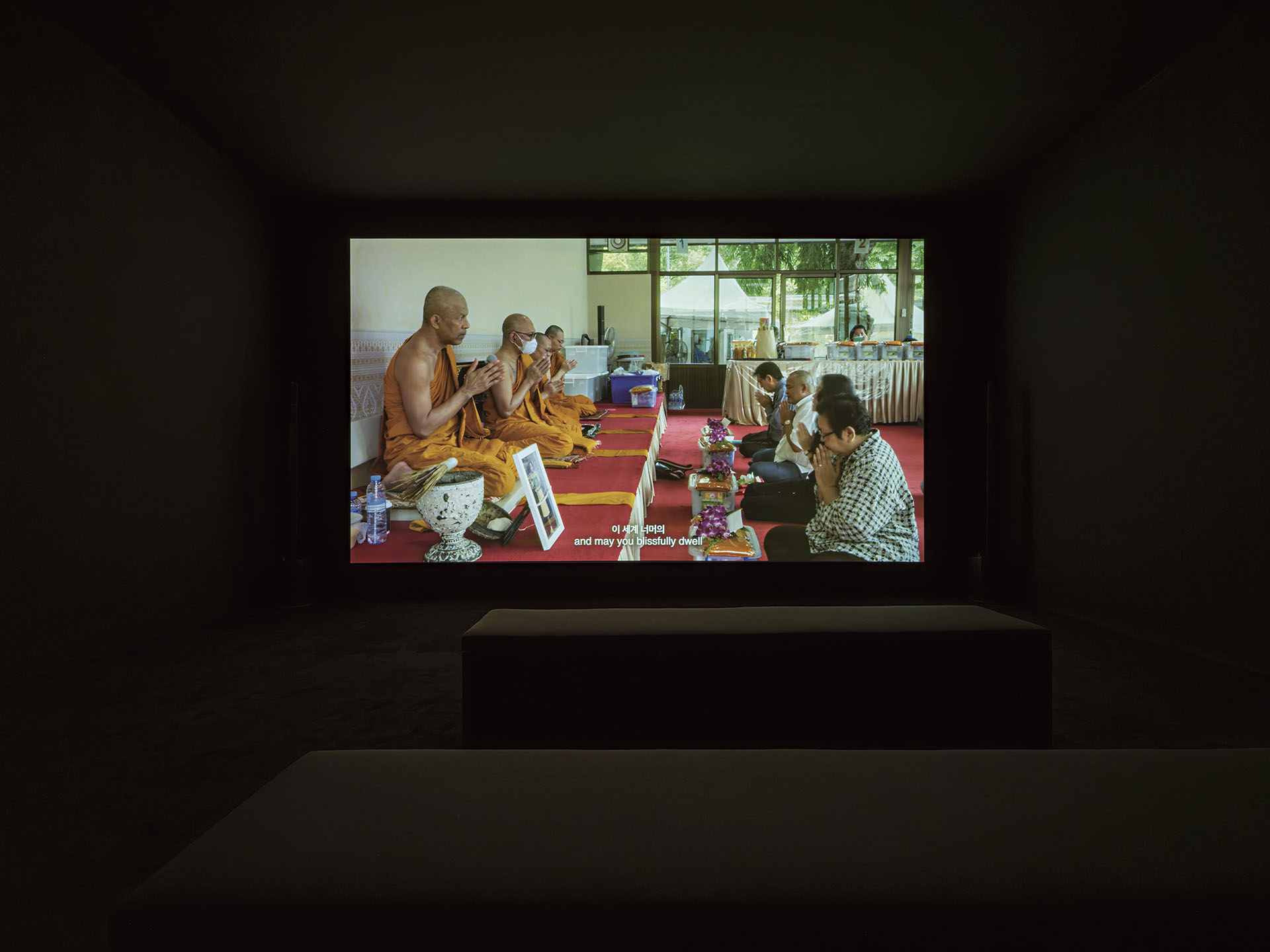 兩件獲得本屆「SeMA–HANA媒體藝術獎」的作品,也被放在這個框架下一起展出。泰國導演阿諾查.蘇維恰空蓬(Anocha Suwichakornpong)的《Narration》,是一部長達49分鐘的單頻道錄像,作品核心聚焦2010年曼谷軍事鎮壓的民主運動。藝術家設計了一場虛構的審判,並為此進行排演,以戲劇工作坊的形式邀請目擊者分享當時記憶,透過刻意揭露創作過程中的人為痕跡,藝術家迫使觀者反思歷史如何被建構;而這場排演本身,也轉化為一種儀式,用以召喚那些在官方歷史敘事中被壓抑的人們與未竟的正義。