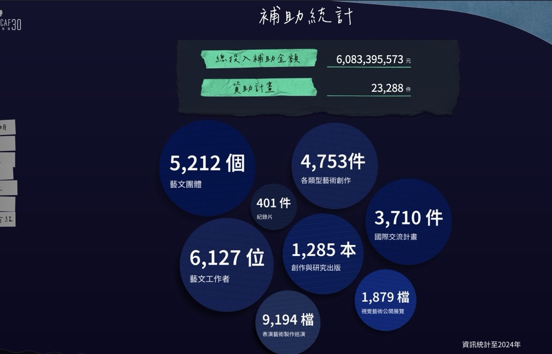 國藝會董事長林淇瀁指出,國藝會三十年來的成果,得益於同仁與藝術夥伴的共同投入,以及為使營運永續而積極投入的財務規劃。他以具體的數字闡述了國藝會的穩健基礎:截至今年九月,國藝會投入的補助金額已累積超過 64億8百萬元,而基金總額亦來到 70.8億元。基金規模的充實成效,已直接反映在每年補助總額的提升上,為臺灣藝文界提供了更為堅實的後盾。