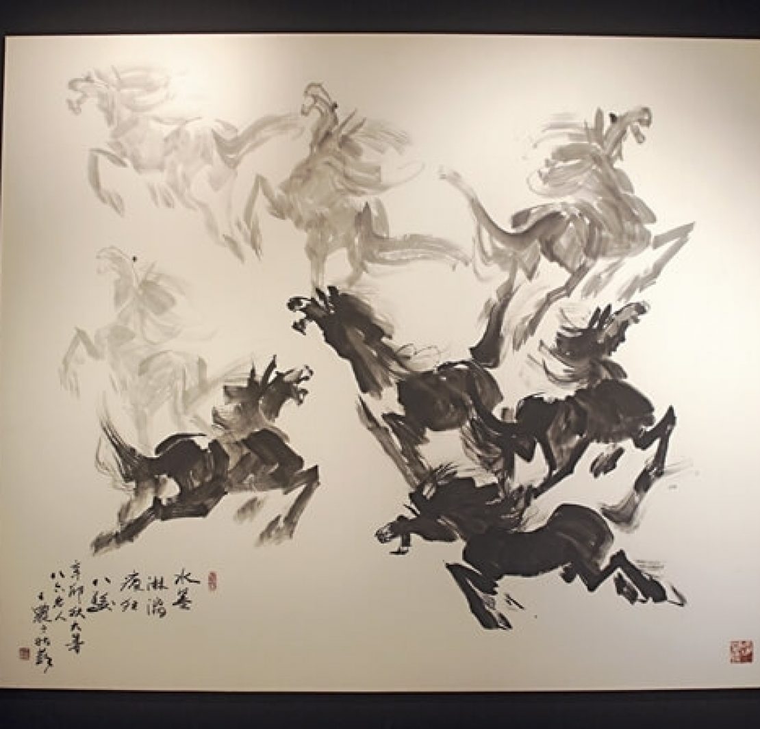 王農2011年作〈水墨淋漓狂八駿〉,200×169公分。