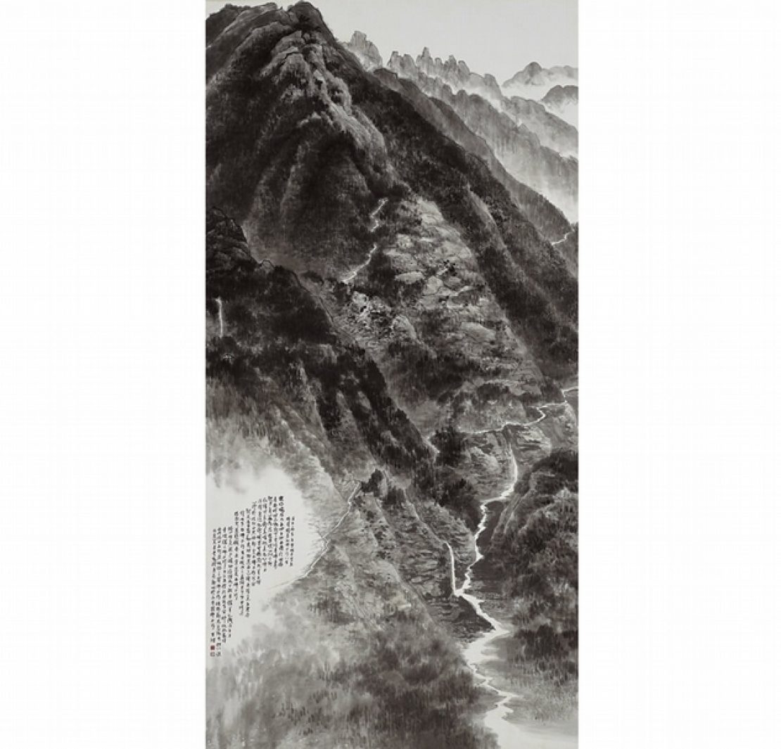 趙宇脩秉性低調,先後受教於張光賓、何懷碩、李義弘等,於歷代巨跡一一攻究。「谿山秘徑」,存留北宋范寬與近代黃賓虹之典範,「以渾厚蒼潤為尚,以浮薄媚俗為誡。」看是渲染,實為點垛,墨氣行於塵點之間,不似傳統皴巖容易施設筆線,於山頭著萬千叢點,傳達鬱鬱蒼蒼,草木滋潤之貌,畫面積墨沉厚,有行夜山之感,這與趙宇脩服役金門山居夜行之生命感受相連結。