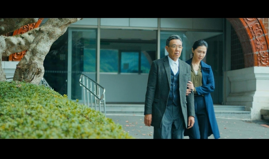 女兒陪伴失智父親走出會議廳。(國立故宮博物院提供)