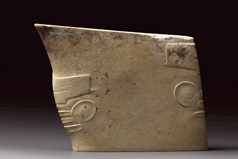 浙江省餘杭反山出土,新石器時代良渚文化〈玉權杖瑁〉,高5.72公分、寬8.4公分。資料提供/香港康文署