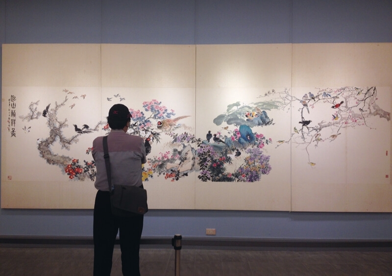 鄧雪峰1983年作〈熙世禎祥〉四連屏,120×120公分×4。