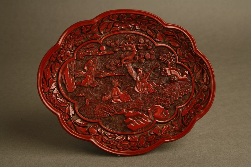 張成造|剔紅文士彈琴葵花盤。圖/澳門非遺古董博覽會