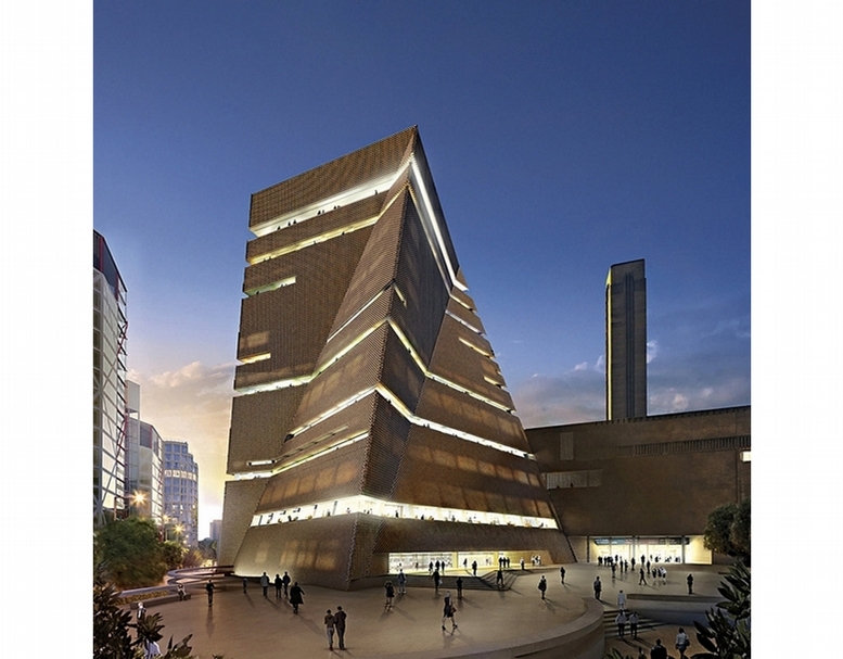 由赫爾佐格和德梅隆(Herzog & de Meuron)操刀的泰德現代美術館擴建計畫模擬圖。