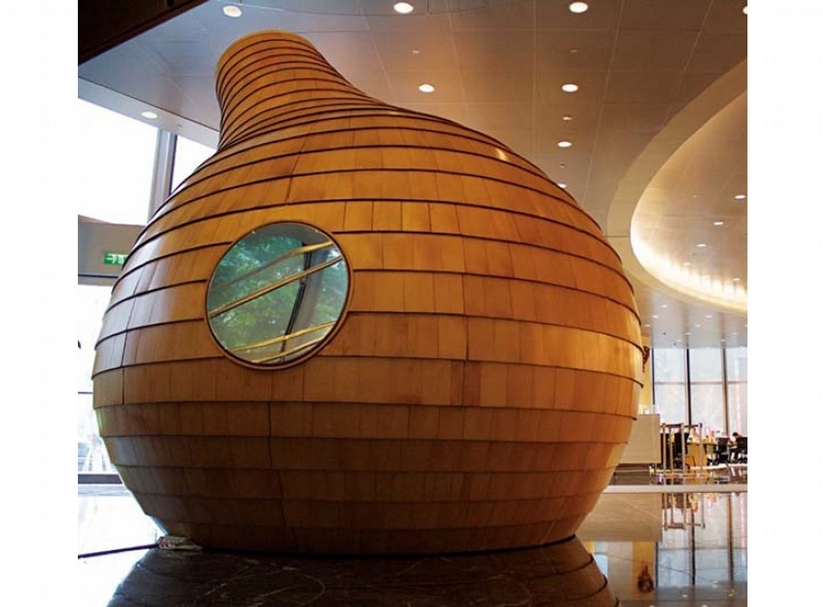 而以此概念,蕭有志嘗試了無污染設計的自我挑戰,一件名為《搖籃書房》的竹編裝置,半穿透如蠶繭般的空間,是由自然材料如竹材、米糠等,結合低度加工的素材以及綠建材如環保夾板、水性環保透明漆等所打造而成,人們可以脫掉鞋子進入空間,於其中任意的或躺或臥,在由竹篾片交織產生的明滅光影氛圍中,感受這些自然素材與空間所帶來的放鬆與平靜;而重新界定打造事物的方法思維時,所遭遇到關於創意、美學與技術的學習與回饋,都提供了設計者嶄新的挑戰與靈感養分。