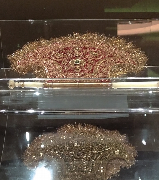一進入展廳,三大單元的明星展件〈雙柄罐〉、〈瓜瓣杯〉、〈玉柄斧形金絲扇〉,集中獨立展出各具特色,晶瑩華麗,精彩動人。對於該展,翁宇雯特別說明:其中13件展品為故宮購藏後的首度亮相,包括有印度〈玉柄斧形金絲扇〉,及蒙兀兒帝國〈水晶馬首柄短劍〉、〈青綠玉鑲金嵌紅玻璃虎首短刀〉、〈玉髓柄鑲金嵌寶金箔鞘短劍〉等短劍、短刀。蒙兀兒帝國短劍、短刀,刀刃為大馬士革鋼,鋼質良好,清代習慣將進貢的刀刃熔鑄為他用。透過新入藏的短劍,除精良的刀柄,且有著漂亮水波紋與血槽的刀刃,可得知其完整面貌,值得觀者細看。特展至2018年7月29日,唯一的限展品:〈玉柄斧形金絲扇〉,以白玉作柄,鑲嵌有鑽石、金絲、紅寶石、祖母綠,整體設計華麗,裝飾華麗,限展三個月,只展到8月27日,歡迎民眾至故宮南院欣賞跨越地域疆界的南亞文化藝術饗宴。