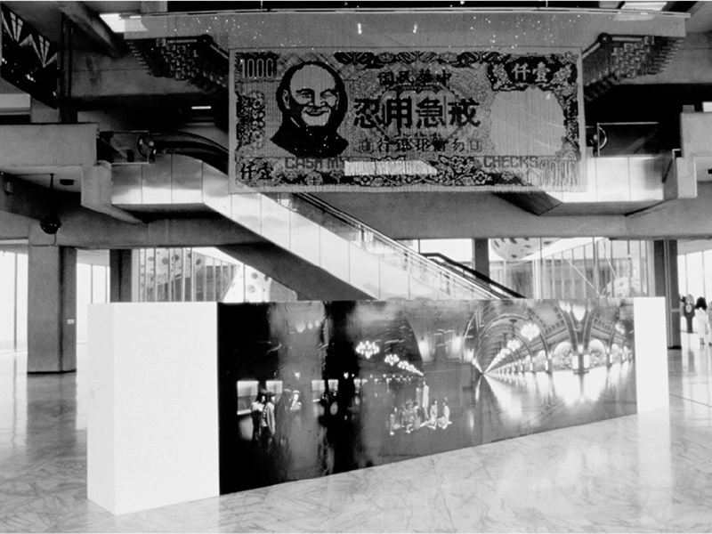 順道一提的是,當時他為了即將到來的個展,在台北圓山大飯店訂了房間,拍攝女性的攝影作品。這些女性都是十七、八歲的模特兒。拍攝的內容都是在床上或是浴室裡的裸體照。助手野村佐紀子在後方不斷地為四、五台相機換底片,荒木則是拚命地換用裝填黑白、彩色正片的相機來拍攝。現場像是戰場一樣。他的後面大約站著六個人。我第一次知道那些看似很親密的私密照,原來是在這樣的狀況下拍攝的。韓國的崔正化(Choi Jeong-Hwa)展出了十二公尺的氣球作品,柳美和(Miwa Yanagi)在大廳立了一道牆,然後把印出來的作品直接貼在上面。台灣的梅丁衍則是用十二萬顆玻璃珠做了一個台灣紙幣造型的巨大簾幕。這個作品是個大作,它一方面牽扯到台灣與中國的關係,另一方面又諷刺了經濟問題,是個極具政治意涵的大作。聽說這個作品現在成為台北市立美術館的收藏。此外我也還記得吳天章的作品。他讓一名女子,搭配著音樂,從一幅台灣一九五○年代的知名油畫裡,像幽靈一樣地走出來到觀眾面前。那是個使用巨大玻璃和投影機的媒體藝術(Media Art)作品,我一直很想再展一次這個大作。草間彌生也在這個展中獨領風騷。七個全長七公尺的粉紅色氣球作品在建築物的中庭裡展出。多虧了館方也將環境四周的東西全都投射成粉紅色。