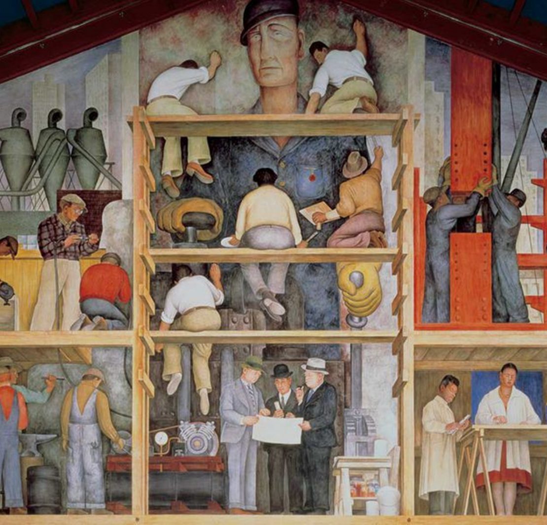 藝術家里維拉是活躍的墨西哥共產黨黨員,壁畫《展示城市建設的壁畫製作》描繪了正忙碌地描繪一幅關於城市建設的壁畫,體現其對工人的崇敬之情,而這也是里維拉在舊金山最重要三件壁畫作品之一。據《紐約時報》(The New York Times)報導,《星球大戰》導演喬治.盧卡斯(George Lucas)對作品表達了強烈興趣,他希望將此幅作品收藏在位於洛杉磯的尚在建造中的盧卡斯敘事藝術博物館(Lucas Museum of Narrative Art)中。