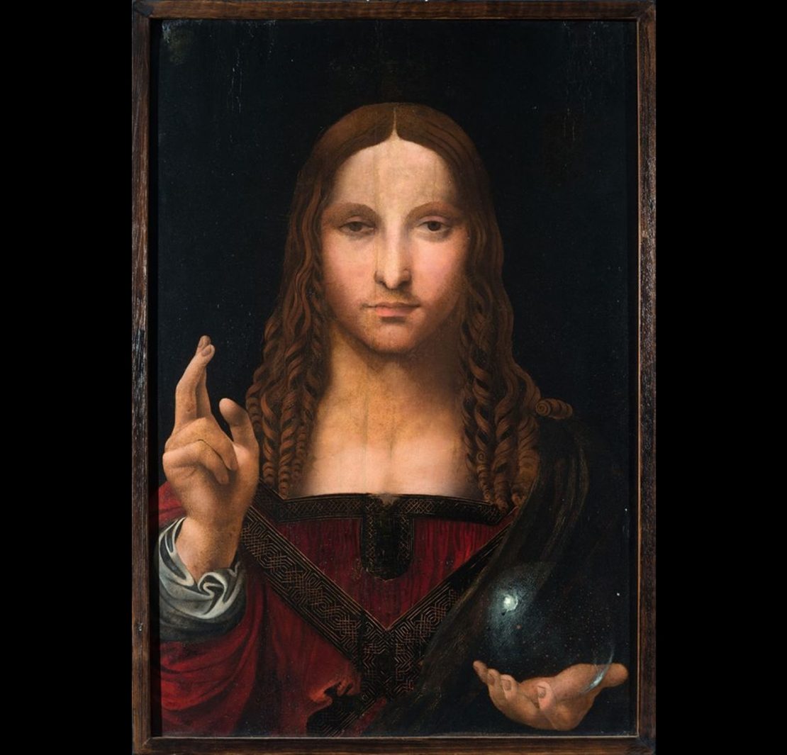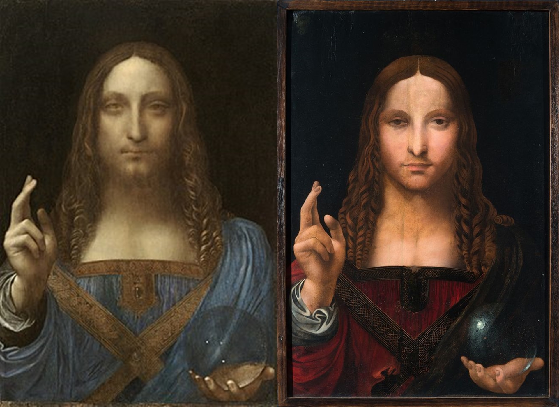 複製畫以鉅作《救世主》(約西元1500年)為藍本,原作在2017年佳士得紐約秋拍中拍出4.5億美元的天價,創世界拍賣最高紀錄,是史上最昂貴的藝術品。而那不勒斯版本的複製畫可追溯到約西元1508-13年,是藝術家溫塞斯勞斯.霍拉爾(Wenceslaus Hollar)在1650年版畫中複製的三幅之一(其中包含達文西的原作)。
