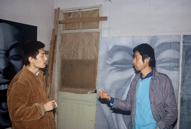 1987年11月,耿建翌(左)與張培力在耿建翌當時任教的浙江絲綢工學院。攝影:費大為