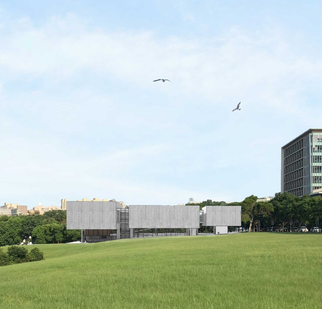 宏亮美術館由郭旭原、黃惠美兩位建築師領軍設計,以三個立方空間連結,順著草坪的緩坡向下,規劃將有地上2層、地下1層,一樓外牆為玻璃帷幕,與四周環境融合,具有穿透感,帶入四周環境的綠意,並以綠建築方式加以建造。