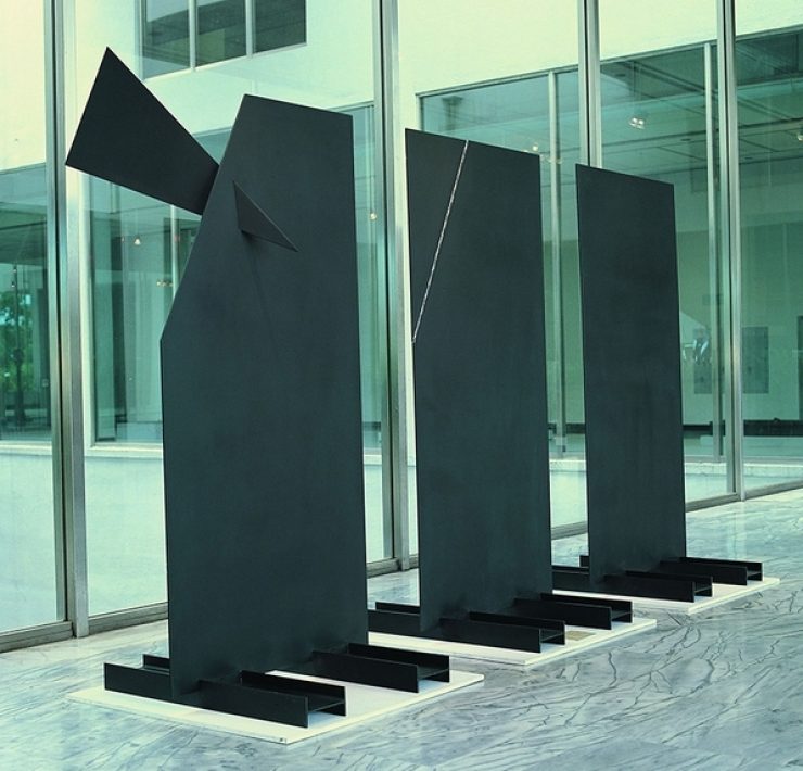出生於1945年的高燦興,因家中的鋼鐵廠背景,讓他自小便對這項材料無比熟悉,而他本身的創作歷程則是從求學階段的泥塑、木雕開始進入到最熟悉的鋼鐵媒材,爾後也自雕塑發展到公共藝術領域。1991年,高燦興首次在北美館舉辦「高燦興雕塑個展」,其後共在館內參與過九次主題聯展,在今年3月底推出為期三個月的「焊藝詩情→高燦興回顧展」,則回顧藝術家30多年的創作轉折。此次大型回顧展中,同時展出涵蓋高燦興1970年代至今的作品,如具有哲學思辨、相似形象不斷迴盪於早期作品中的《神性》(1972)、《超我》(1980);1990年代後轉向抽象構成的代表作《獸性、人性、神性》(1991)、《我心深處》(1991)等;以及近年來高燦興在汽車廠蒐集廢棄板模、焊接成作品,再以廢鐵絲加以浸泡、染色而成的《不銹之頌》(2012)、《隨想》(2014)等作,豐富多樣的創作技法也展現出藝術家多年來對於雕塑創作的思考流動。
