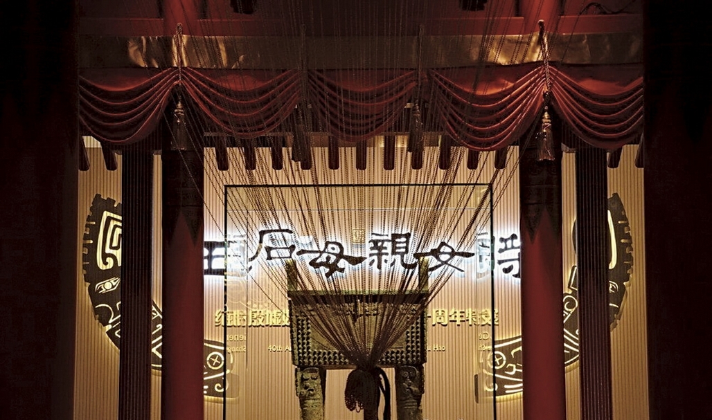 殷墟婦好墓的挖掘,可以說是考古界的一大傳奇,是殷墟考古的一大成就。婦好墓之上,考古人員先是發掘到了一房基,面積略大於婦好墓,甲骨卜辭曾有「甲申卜即貞,其又(祐)于兄壬,于母辛宗」,這一房基有可能正是婦好墓的享堂「母辛宗」。婦好墓能夠完好未被盜取,也可能是因有此一房基掩護之故。婦好墓為長形豎穴坑,無墓道,豎穴長5.6公尺、寬4公尺、深7.5公尺,從墓口到底可分七層,總面積達22.4平方公尺。包括青銅器、武器、玉器、寶石器及象牙等,婦好墓一共出土了1928件文物,其中完整且成組青銅禮器成為研究商代禮制絕佳的材料。此次首都博物館「王后.母親.女將─紀念殷墟婦好墓考古發掘四十週年特展」,由中國社會科學院考古研究所、北京市文物局、河南省文物局主辦,展品達411件,其中更有首次亮相展出之文物。是展一共分為「她的時代」、「她的生活」、「她的故事」及「她的葬禮」四大單元。