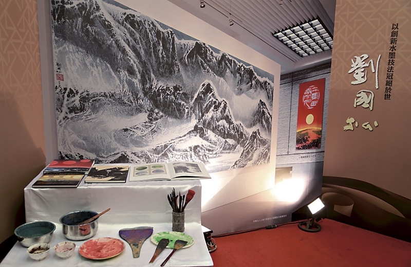劉國松「以創新水墨技法冠絕於世」展示區。圖/行政院文化獎官網。