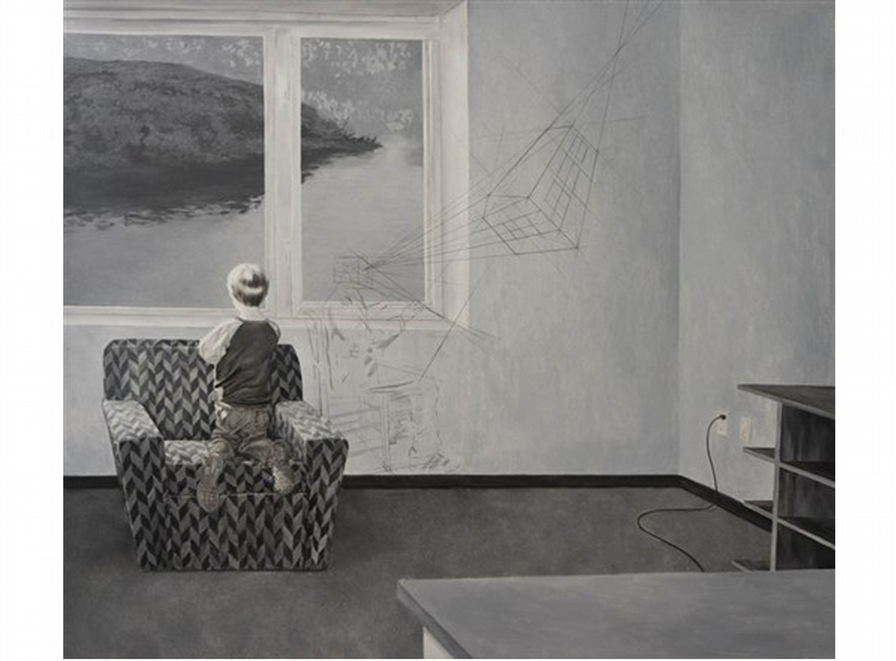 第二次來台灣展出的羅馬尼亞藝術家皮特里瑟,此次作品聚焦於與當時代正蓬勃起飛的科學發展有密切關連、並為後來的繪畫史帶來廣泛影響力的文藝復興時期透視法,這是一種將畫面景物如天花板、壁柱連線、牆角、地磚或桌椅左右邊線等的假設延長線,相交於畫面深處固定的消逝點之上,如此便能將立體空間中的實際物體或景物,表現在二度圖面上,同時營造出景物的立體感與相互之間的空間距離關係。
