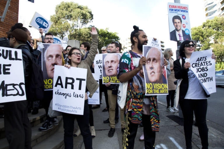 抗議者在change.org上獲得一萬三千個連署簽名,同時藝術家在墨爾本的尼古拉斯大樓(Nocholas Building)上懸掛「Straya – the Arts End of the World 」(澳大利亞:藝術世界的盡頭)字樣的布條,共同要求政府應對藝術給予持續且穩定的支持。澳洲國家視覺藝術協會(NAVA)會長、「藝術改變生活」(Art Changes Lives)運動推動者之一溫尼克夫(Tamara Winikoff)表示,「政府缺乏文化視野、理解和決策基礎,對澳洲藝術部門造成極其惡劣的混亂,如不即時彌補改善,必將損害這一代人的文化表達。」。