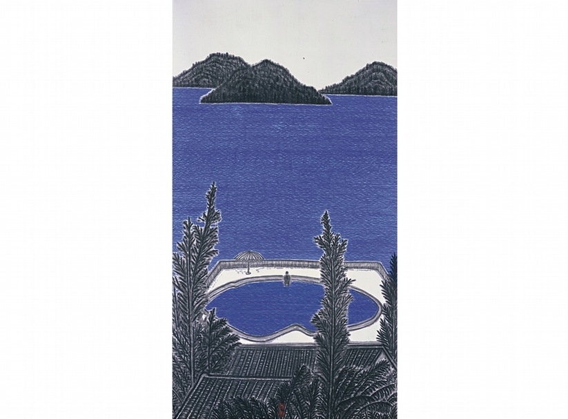 倪再沁|藍藍的海 水墨、複合媒材、宣紙 182×96.5cm 2004-2008 大未來林舍畫廊提供