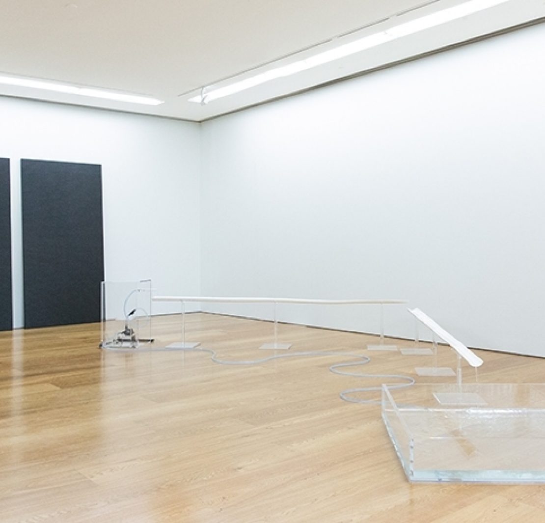 谷口的作品常常富有壓迫感,無法破譯,如一堵拒人千里的磚牆。她的另一件作品為一座噴泉,當機器啟動水流運作,觀者看到水被泵出,經透明喉管向下流,再繞過一個大圈,循環往復。她的作品鼓勵觀眾帶著某種認知進行觀看,面對如水泵的節拍器,甚至呼吸般規律記錄時間流逝的巨大繪畫,我們對時間的感知將怎樣變化?想像著如此無窮又緩慢的速度,這樣的感知又會作何調整?她邀請我們觀看某一事物向另一事物轉化的過程,以及其中緩慢、辛勞的工作,揭示出一個使人得以專注和減速的時空。在崇尚完成品的當代藝術領域,她在作品中囊括了不同時間、速度和轉化過程,她以驚人的注意力和全然不同的時間場域介入現時經濟中高速生產與消費的大環境。終日埋首在馬尼拉工作室的她,踏實的實踐具有超越性,且無窮無盡,作畫的規律和節奏感無意間影響和組織著她的思考和實踐。她的裝置匯聚了不同時間形式和經驗,她層層精心構建—聲音、材料、節奏、尺幅、標題、甚至觀眾及其與作品的相遇中被喚起。《典藏投資》有幸短訪了藝術家,作風實事求是,絕不拖泥帶水的她爽快地回答我們的3個問題。