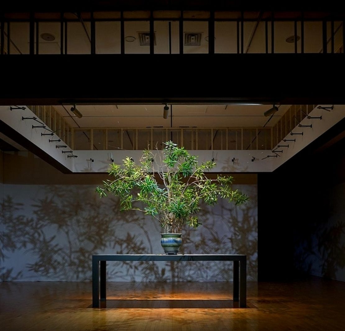 1986年出生的莊志維,畢業於台北藝術大學新媒體藝術研究所和交通大學建築所。參展作品《轉生樹》的靈感來自於在日本駐村期間觀察到季節變化中植物的自體調節。延續先前思考的生物材料與非生物材料之間的關係,藉由人工機械外力牽引著植物這株生命體,植物柔弱的生命面對機械機構的剛硬與暴力,看似殘忍卻反映著現實生活中的拉扯與無可奈何。隨著展期的推進,隨著空間光影的變化,時間藏匿其中。緩慢地,植物與機械機構形成共生關係。《轉生樹》詩意又切題地,通過藝術家的敏銳眼光,反思亞洲的生態環境議題,一個迫切需要我們關注的無止盡複雜問題。