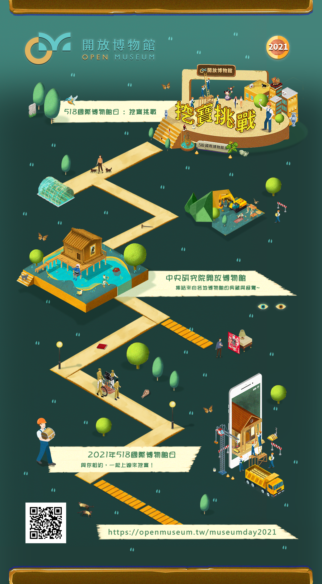 此外,中央研究院數位文化中心與中華民國博物館學會2021年再度攜手,號召更多國內典藏機構共襄盛舉,重磅推出「挖寶挑戰」活動。包括中研院各館所在內的22家博物館、美術館及研究機構等,運用「開放博物館」平台,打造18個線上展覽,並新增逾17,400件珍貴藏品,開放民眾隨點隨看。5月18日國際博物館日,數位文化中心更首度發布「開放博物館.參與」平台,打開專屬博物館的策展界限,提供民眾自由進行典藏、策展,構築自己的數位博物館。