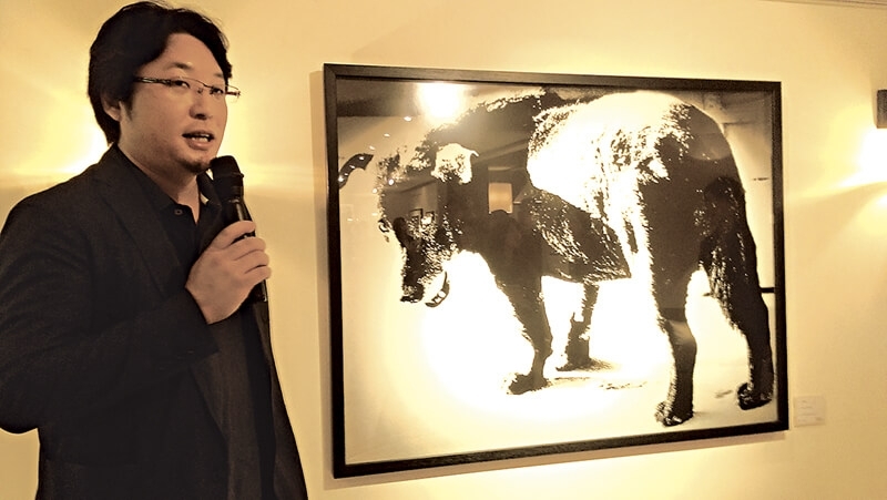 森山大道基金會的執行長森山想平介紹作品《野犬》(1971)。攝影/柯舒寧