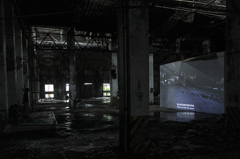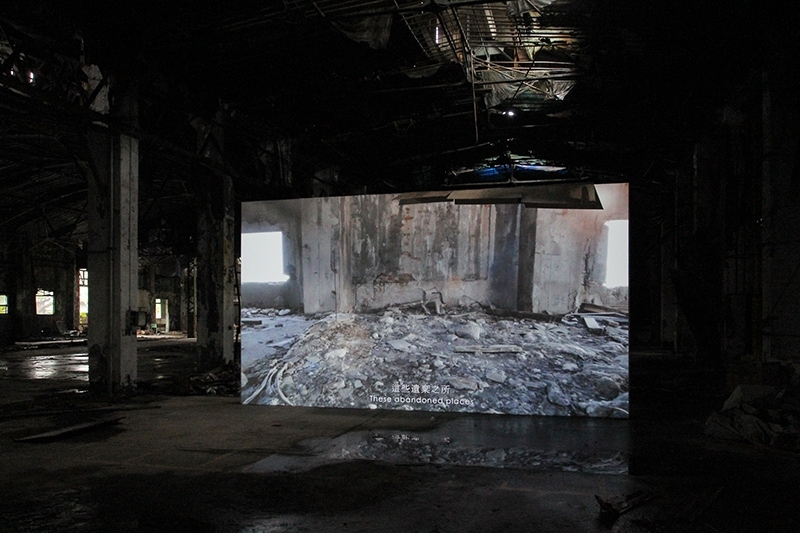 劉玗的錄像以實地拍攝影像再作品化了場址文本,她使用了催眠般的敘事手法和影像技巧,魔幻化的運鏡方式與恍惚般的游走,也在探險般的廠區遺址內顯得恰如其分。陳志建的三頻影像裝置,透過一種有距離卻又不突兀的方法,介入了廠區遺址的窗景和蔓生的野草間。「映像節」作品不似大多數藝術節或大型策展塞滿了作品又來不及消化,反而很低密度地,甚至是刻意保持著某種與原地景的接軌方式,這或許是另一個值得稱許宜蘭縣文化局的部分:沒有為了辦出首屆大拜拜聲勢的「映像節」,同時也高度尊重策展單位的規劃。
