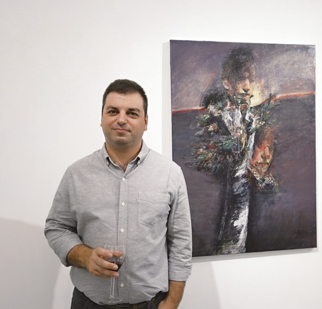 希臘藝術家Nikos ASLANIDIS與畫作合影。(攝影/游如伶)