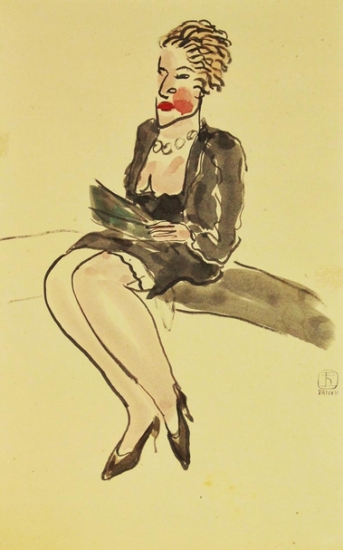 常玉《巴黎女子》,水墨、水彩、紙本,30x28cm,年代未詳。(阿波羅畫廊提供)