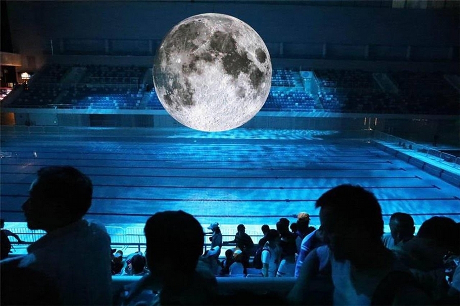 盧克.傑拉姆(Luke Jerram)《月之博物館》(Museum of the moon),複合聲光裝置,直徑10m。(台北國際藝術博覽會提供提供)