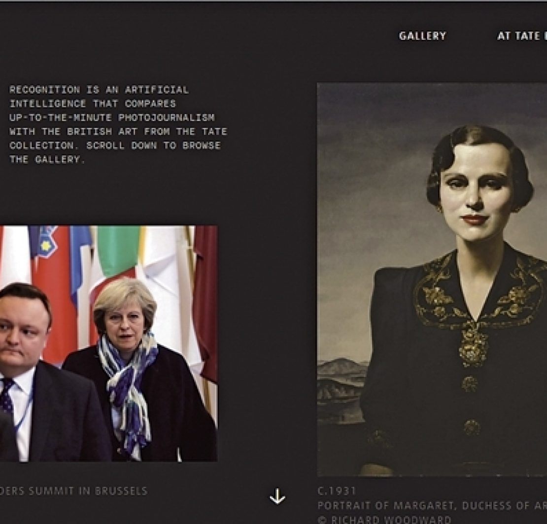 英國泰特美術館(Tate Britain)第三屆IK獎(IK Prize)得獎者出爐,來自義大利的Fabrica傳播研究中心的作品「Recognition」以人工智慧(AI)辨識圖像技術,分析新聞圖片與泰特美術館作品,挑選出相似的館藏畫作,呈現令人玩味的時空交錯。IK獎鼓勵大眾透過數位科技,提出新點子挖掘館藏特色、連結生活與藝術,舉辦至今每屆作品都令人驚豔不已。此屆得獎的「Recognition」透過人工智慧可自動偵測畫面中的相似度,若兩張圖像吻合,系統便自動將上傳的圖片與相似的畫作並列呈現,觀者可從中發現昔今相似之處,兩者彷彿被緊密地交織在一起。本屆得獎團體Fabrica將獲得1.5萬英鎊(約新台幣64萬元)的獎金,以及9萬英鎊(約新台幣387萬元)的生產預算,還可以接受泰特博物館與微軟的技術支援。目前「Recognition」已在線上展出,並於泰特美術館展出至11月27日。