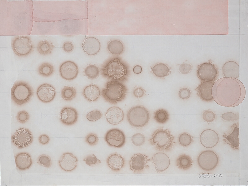 梁銓《小茶跡之一》.紙本拼貼.45×60 cm.2015。(索卡藝術中心提供)