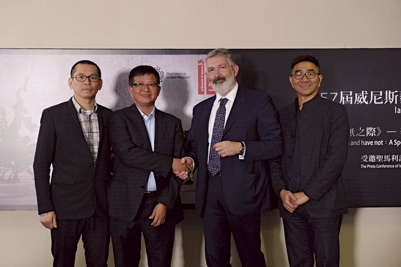 嘉賓合影,由左至右為:學術主持楊心一博士、李光裕、聖馬利諾國家文化管理局局長暨威尼斯雙年展聖馬利諾國家館政府主管Paolo Rondelli、采泥藝術負責人林清汶。圖/采泥藝術