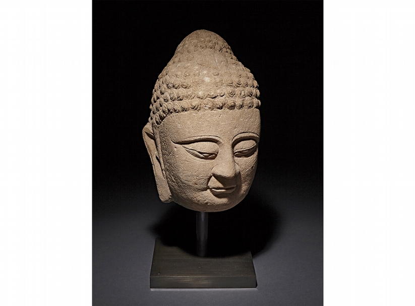 唐〈砂岩佛首〉,香港吉慶堂,1993年購於多倫多C. C. Lai Antique,加拿大多倫多私人舊藏。