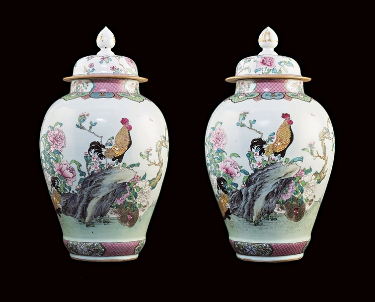 馬錢特(Marchant):清康熙〈五彩庭院仕女圖瓶〉。圖╱倫敦亞洲藝術週。